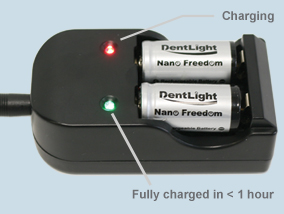 Nano Freedom Battery (2/pk) runs nonstop ~ 3 hours and recharges in < 1 hour.